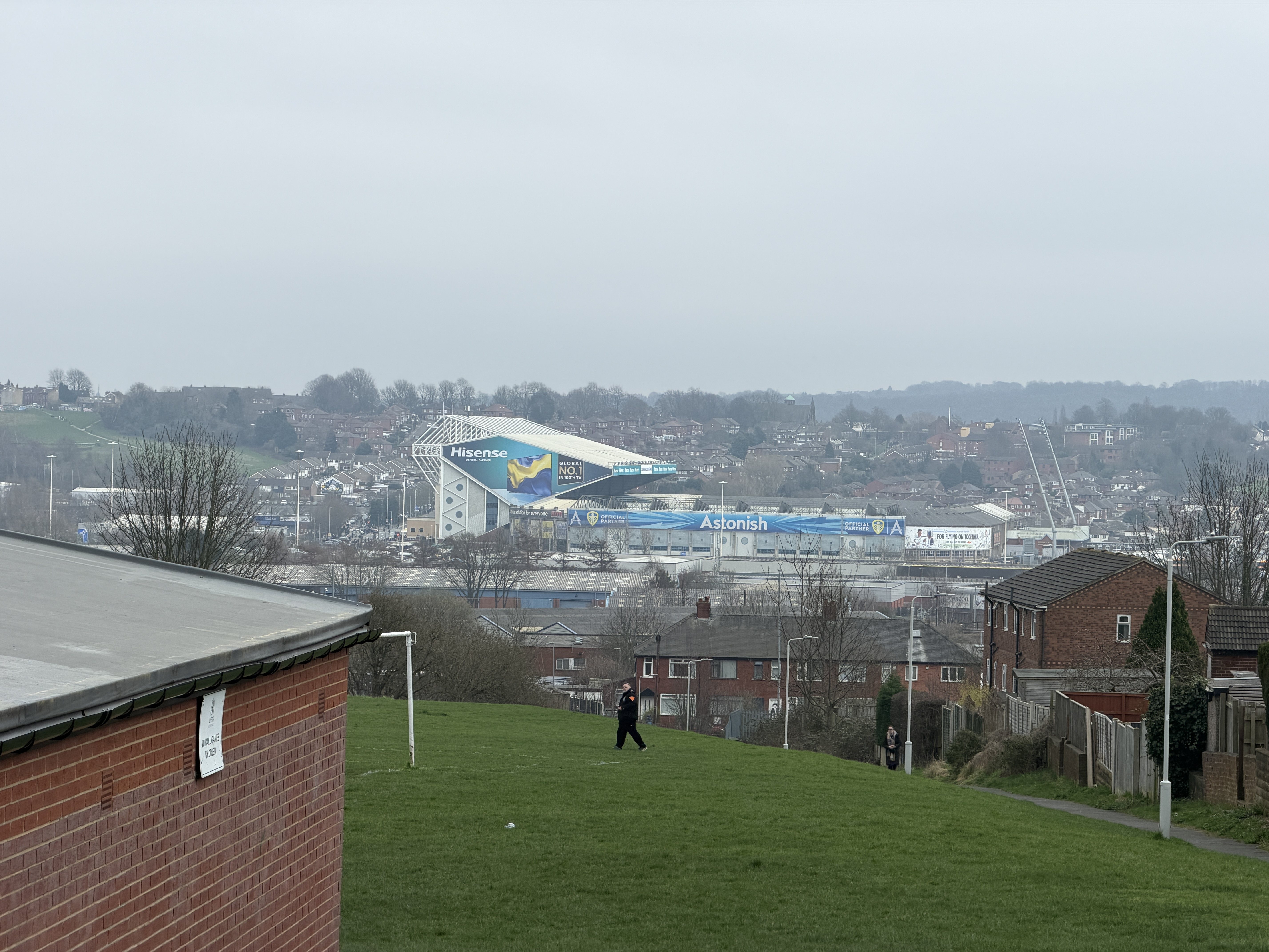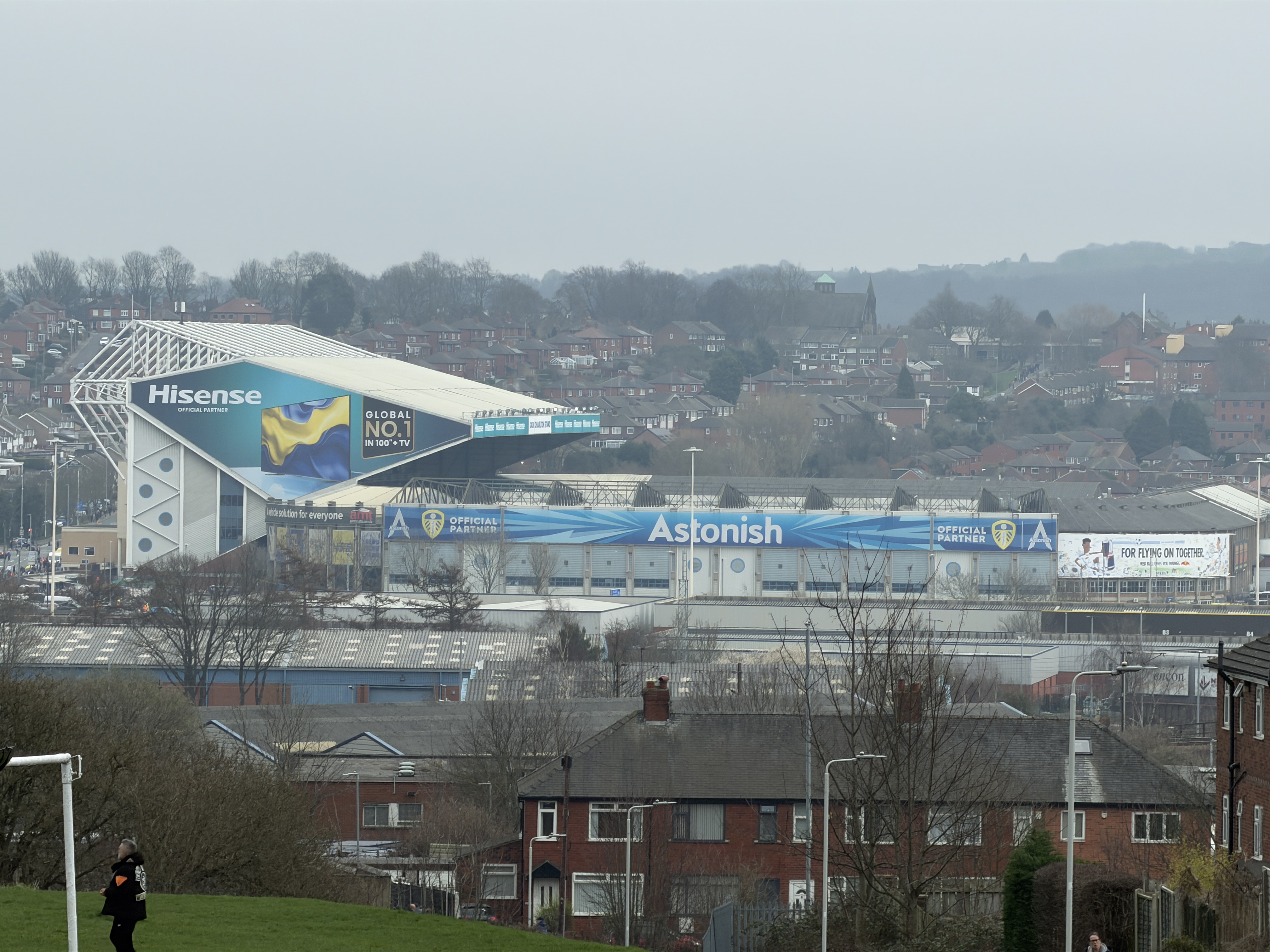 I was meant to meet my Norwich-supporting cousin for a drink before the game but that didn't happen, so I grabbed two slices of pizza from the Greggs inside the Asda where I'd paid a surprisingly small amount to park for the day, and then walked in more or less a straight line to the ground, with a nice view along the way.